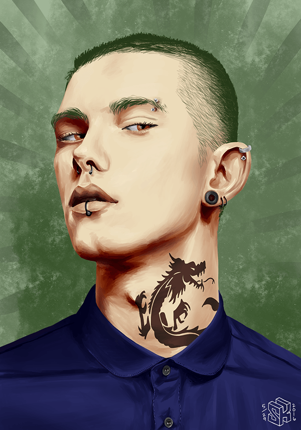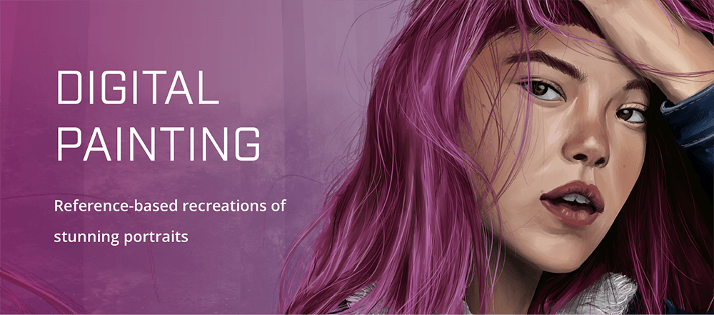 In an effort to enhance my digital painting skills, I set out on a personal project to paint 12 digital portraits. I selected a collection of photographs from the Portraits for Drawing blog and other places around the web and set to painting! Using a Wacom Cintiq and programs like Paint Tool Sai and Photoshop, I completed these 12 pieces over the course of one and a half years. Each portrait taught me new skills and techniques, and in each I tried to add my own spin from the source material. Check out my 12 portraits above, as well as information about their reference images and the process of creating them!
