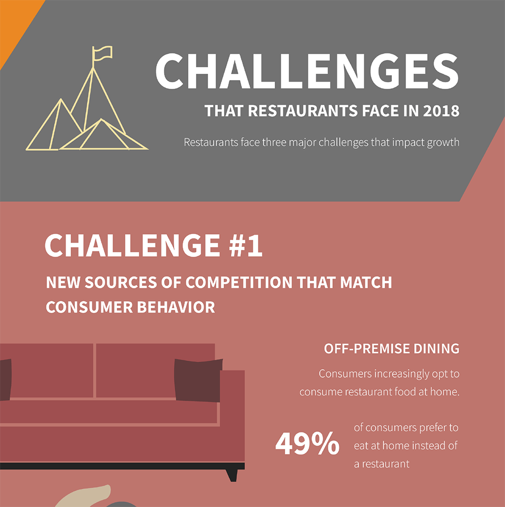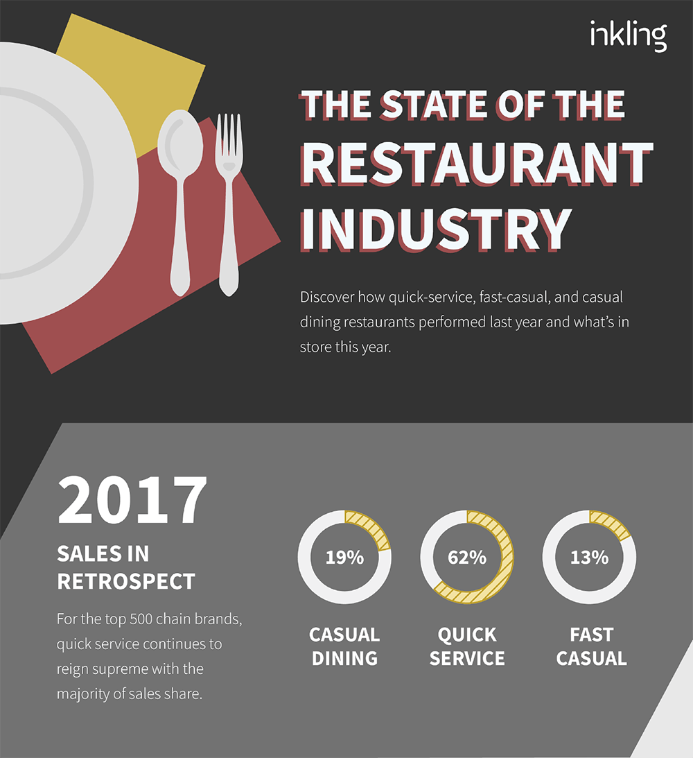 While filling the role of Front End Designer at Inkling, I had opportunities to branch out from template design into graphic design and illustration. One such opportunity was the creation of an infographic about the restaurant industry. The process started with me receiving a text document containing all the copy and percentages, and then being given free reign to turn it into an engaging image. I would create drafts and iterate on them after gathering feedback, and I would make all illustrations and designs myself in Adobe Illustrator.